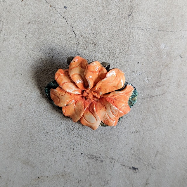 【concept】 オレンジ色の花がモチーフのブローチ。 【size】 縦5.5cm 横7cm ※used品につき、保証は致しかねます。 多少の汚れ、擦れ傷、傷み等はございます。予めご了承ください。