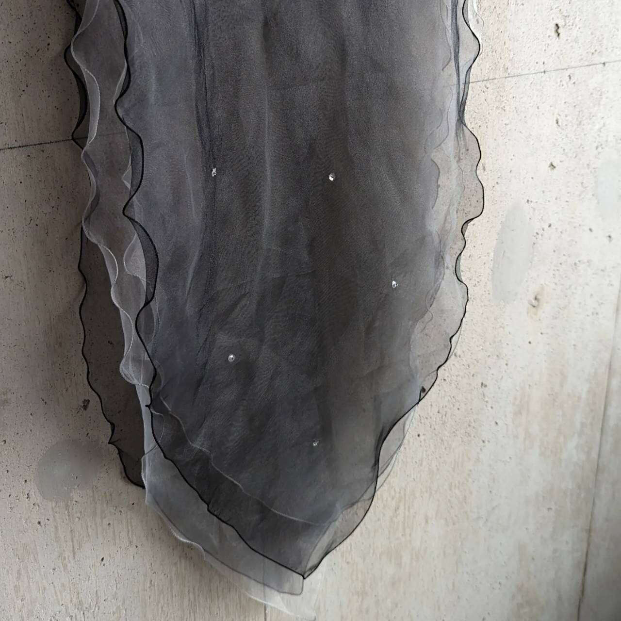 まるで天の川をそのまま身につけるかのようなスカーフ。散りばめられたスパンコールやパールが切ない。