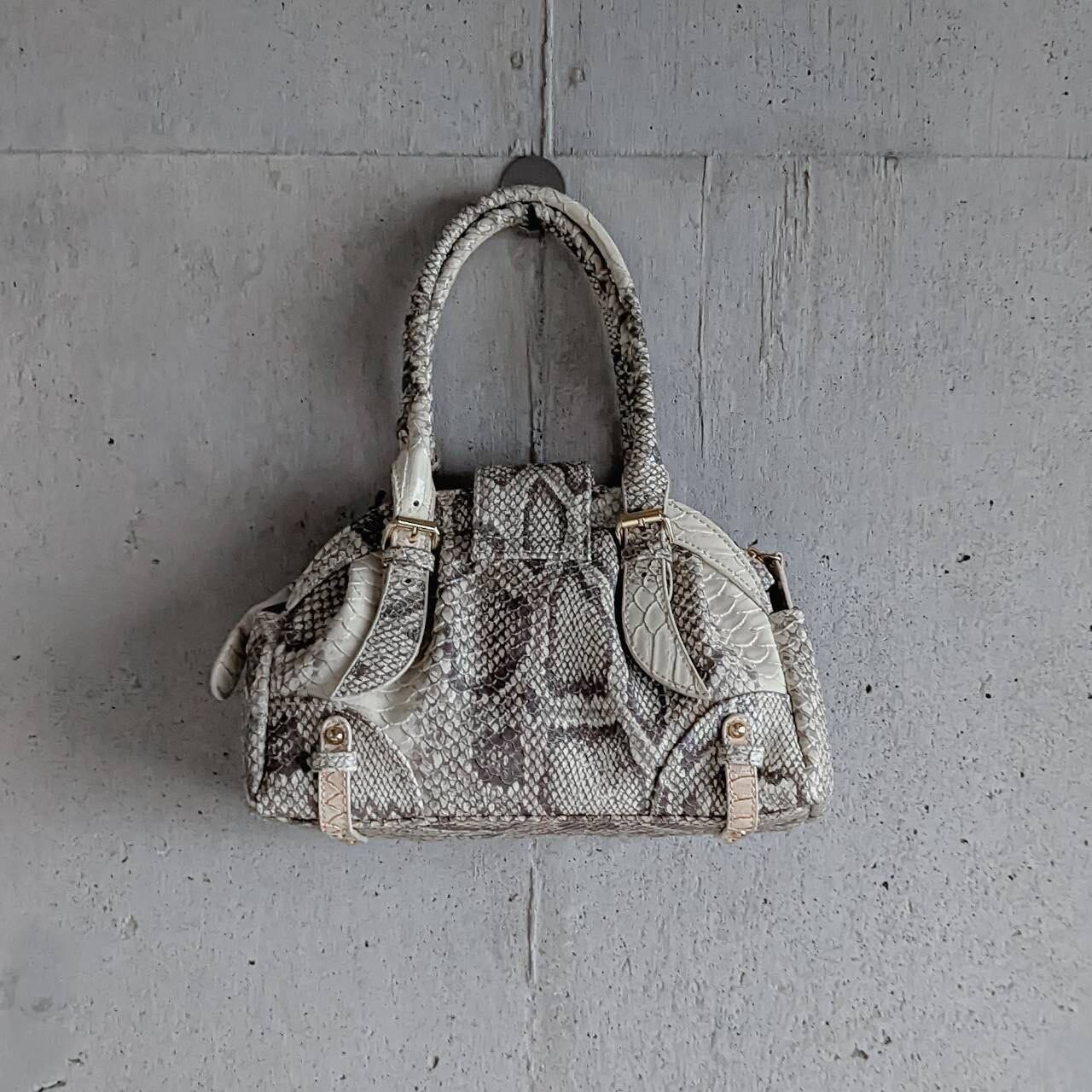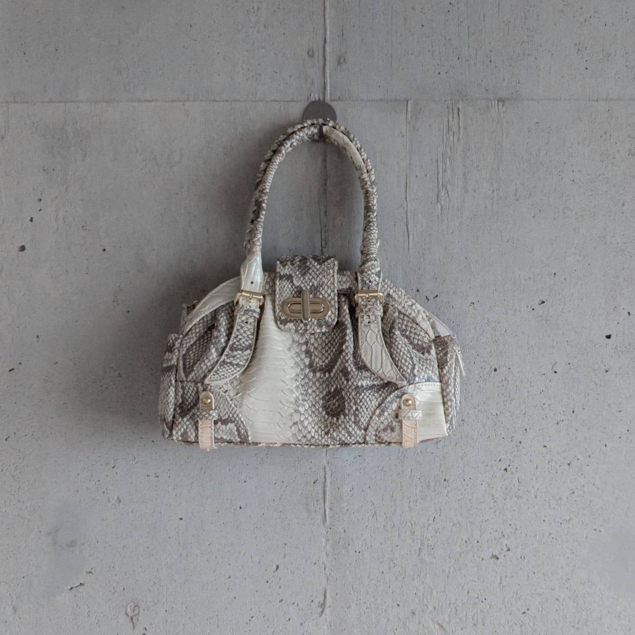 強烈なヘビ柄が自然と調和する魔法のようなバッグ。